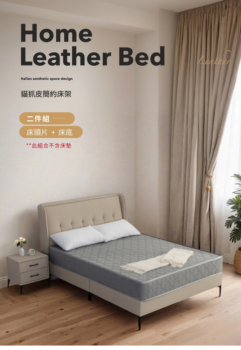 威尼6尺雙人貓抓皮床架/房間2件組(床頭+床底)卡其色