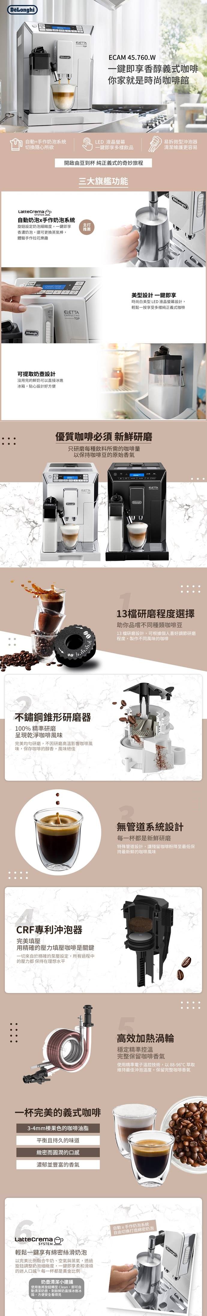 迪朗奇Delonghi 全自動義式咖啡機 ECAM45.760.W/45760
