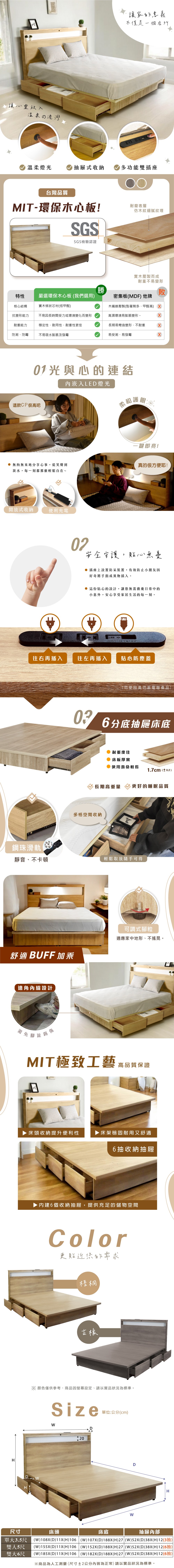 IHouse-山田 雙人5尺房間2件組 (燈光插座床片、6抽收納床底)梧桐