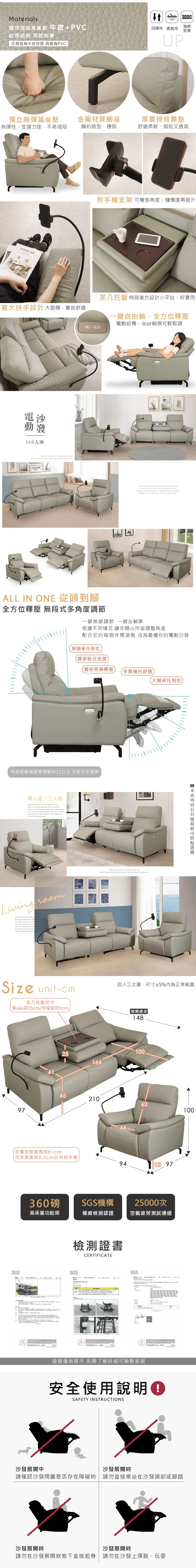 點我下載Homelike 喜家居1+3人座翻背茶几雙電動沙發組(附手機支架)