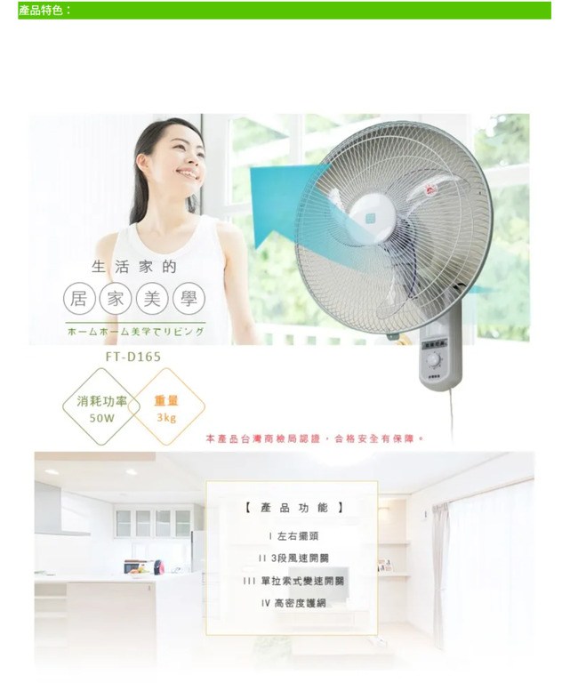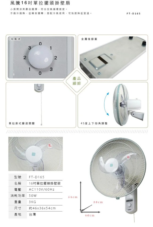 【風騰】14吋 掛壁扇 FT-D145 (需手動擺頭)