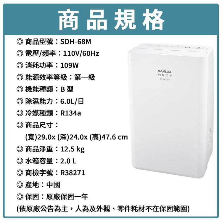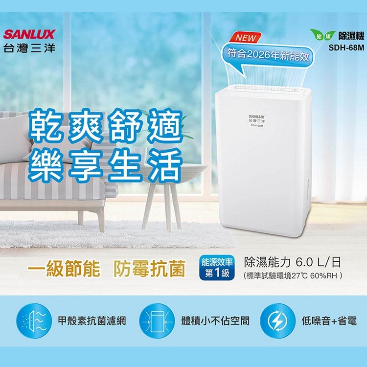 SANLUX台灣三洋 6公升1級能效除濕機 SDH-68M