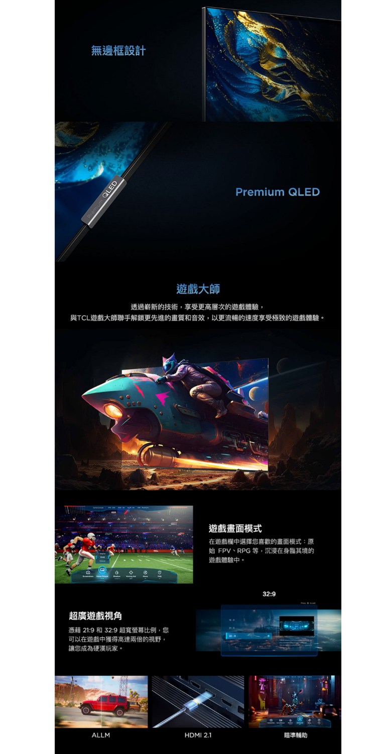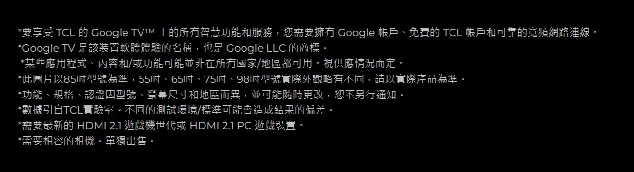 TCL 85吋 C8K 頂級QD-Mini LED Google TV 量子智能連網液晶顯示器 85C8K