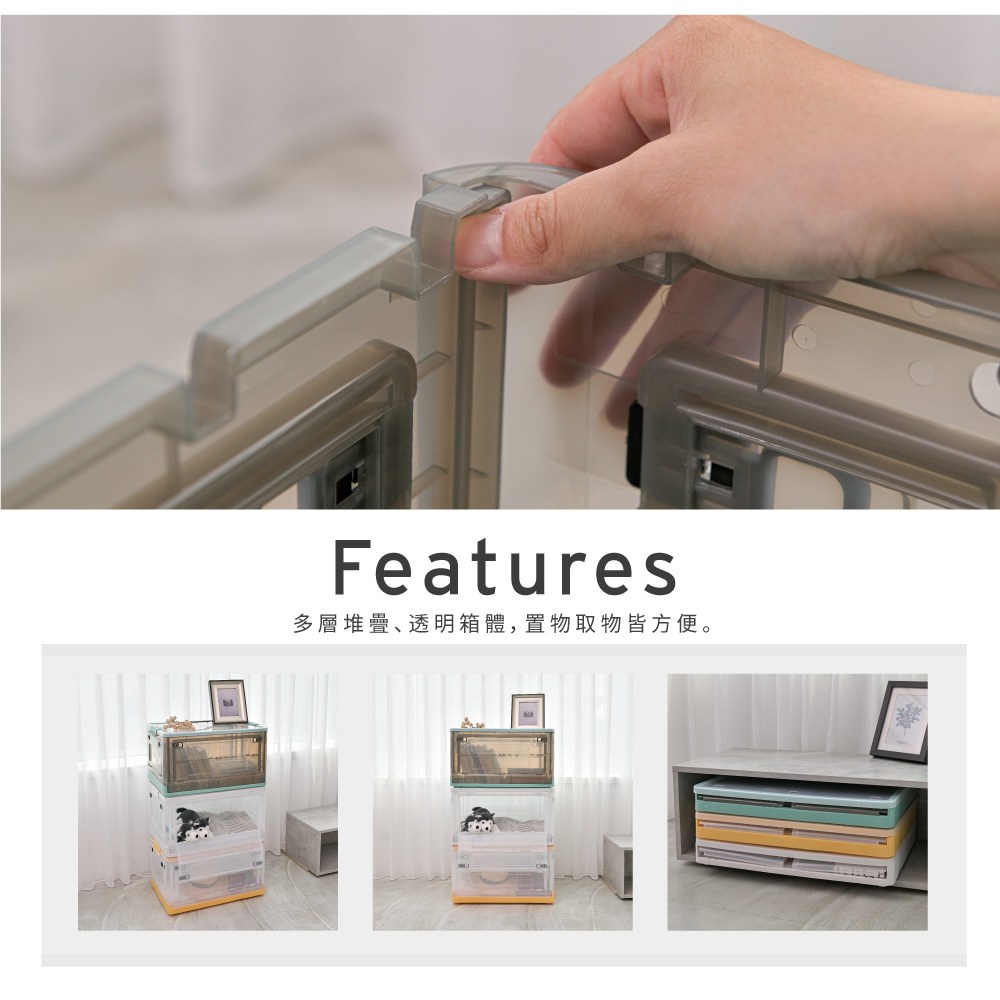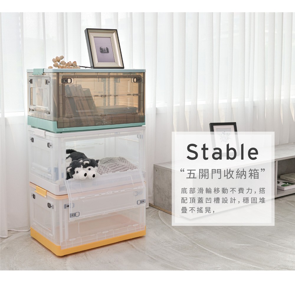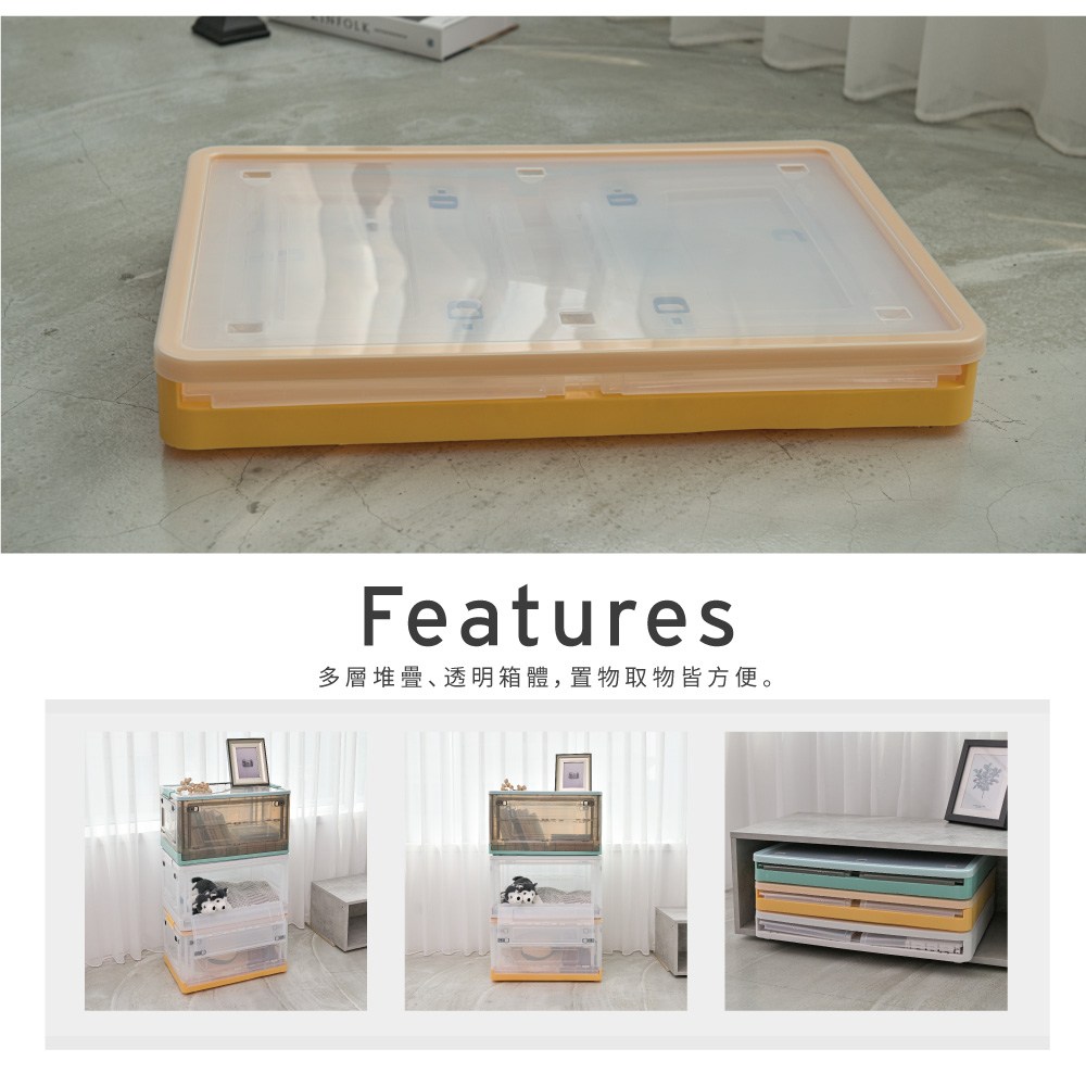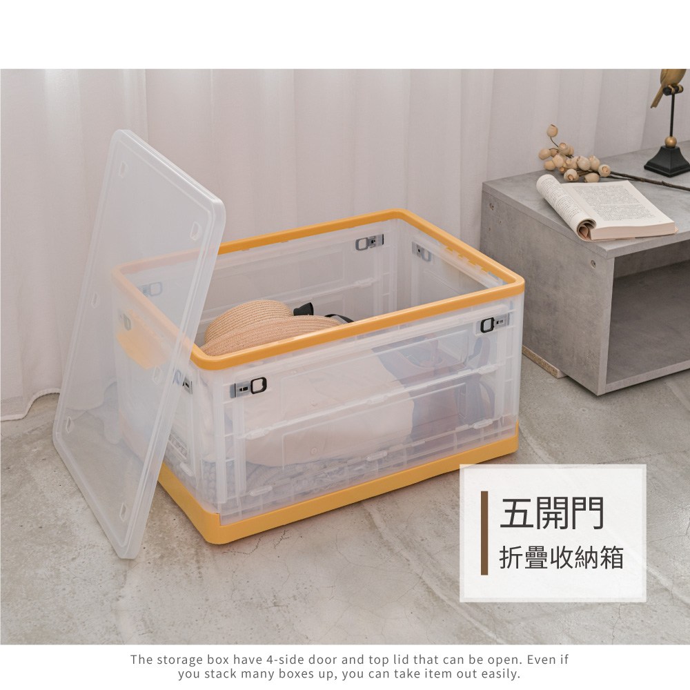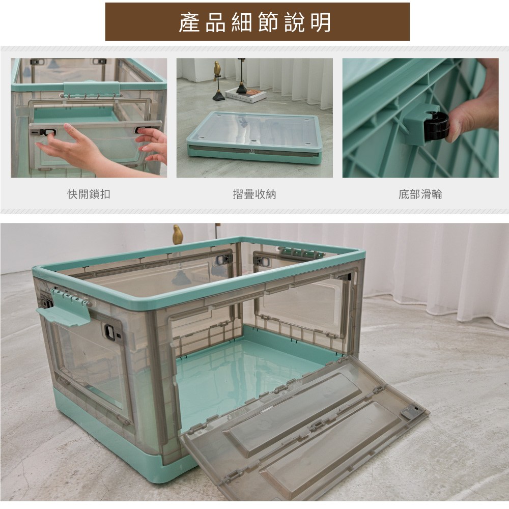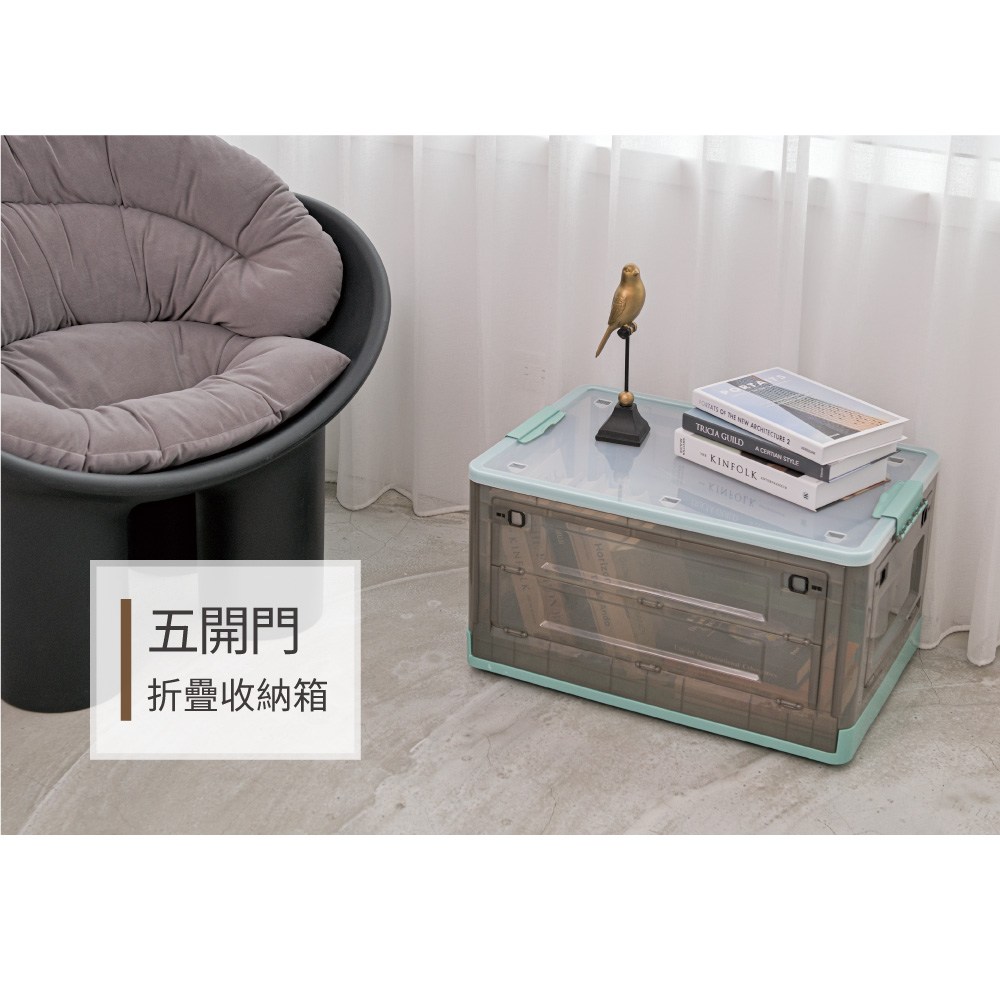 【H&R安室家】五門開可摺疊59*41*34cm透明收納箱BNF99綠色