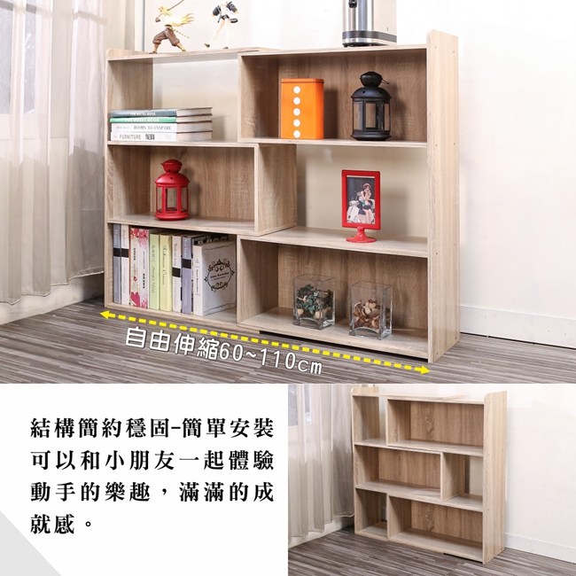 空間規劃隨著居住者的生活前進而改變,家具也要像變形金剛能伸縮轉彎才能跟上生活的節拍。這個伸縮收納櫃,配合擺放的空間尺寸,跟訂製家具一樣,不浪費一公分;還能擺在轉角作L型開放櫃,物品好拿取,解決角落收納問題。收納櫃能伸縮,改變一成不變生活。生活消耗品一次買多了,隨意拉開,調節寬度、角度,養成整齊收納習慣,節省時間讓生活井然有序,輕鬆創造各種收納空間。此外,板材使用低甲醛板材,讓您用得安心。如此多功能的收納櫃,是家中不可或缺之物。