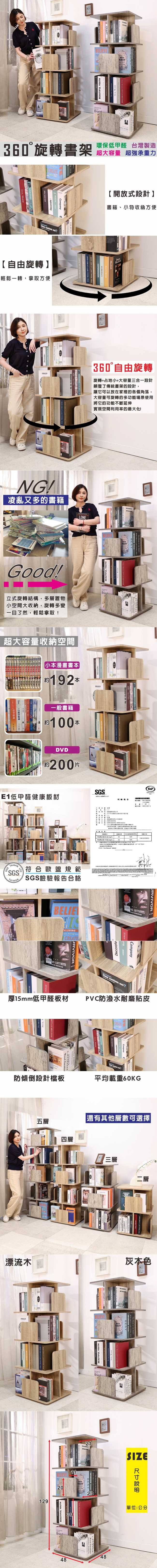 BuyJM MIT低甲醛寬48x高129公分四層360度旋轉書櫃/書架/展示架/雜誌架漂流木色