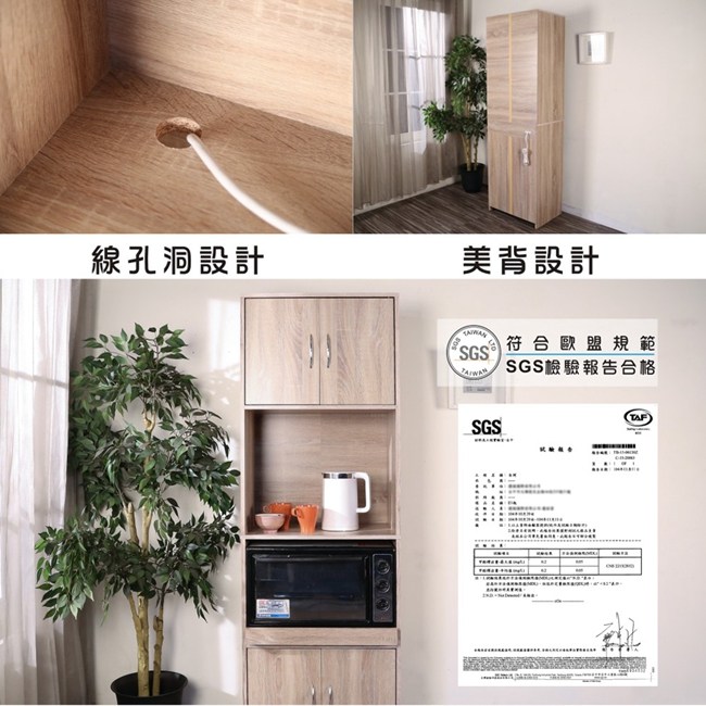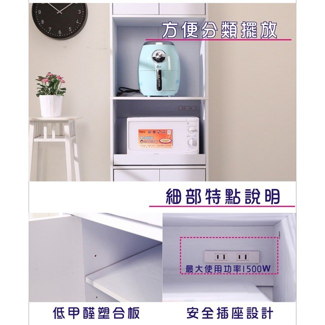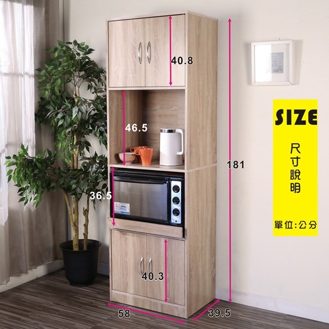 BuyJM台灣製低甲醛附插座高180cm四門廚房櫃/電器櫃/收納櫃/餐廚櫃漂流木色