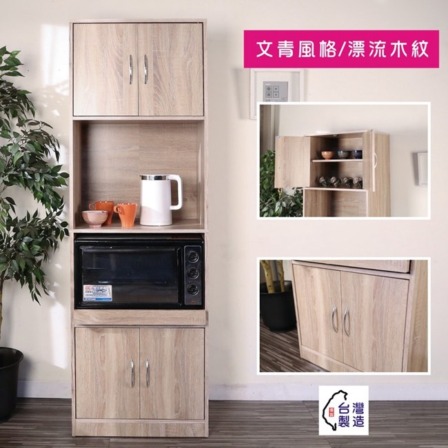 Boden-潔妮2尺收納高餐櫃/碗盤櫃/拉盤電器櫃-60x40x180cm