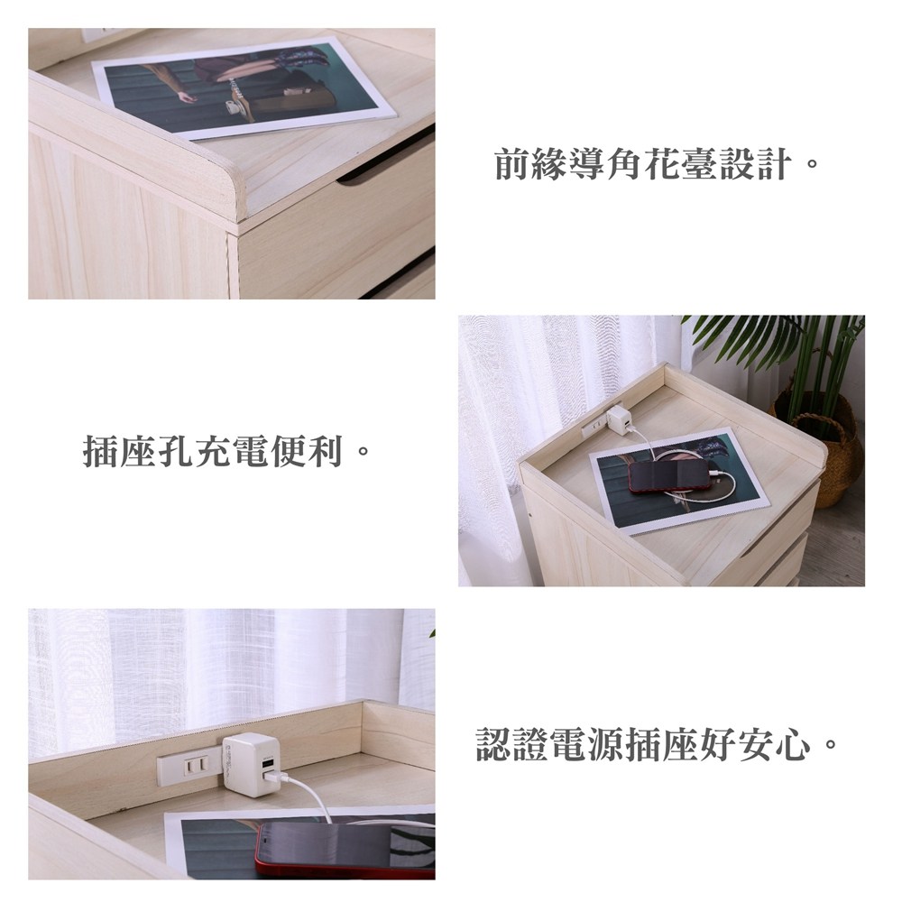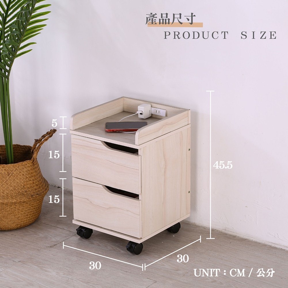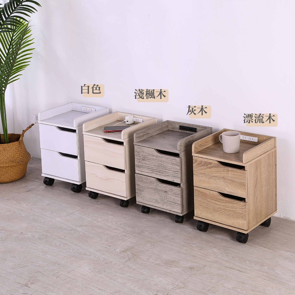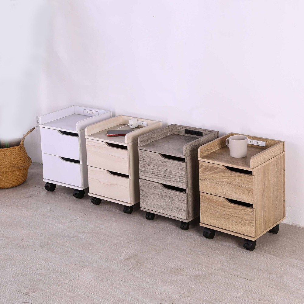 BuyJM 低甲醛附插座二抽附輪活動櫃/抽屜櫃/床頭櫃/公文櫃/檔案櫃漂流木色