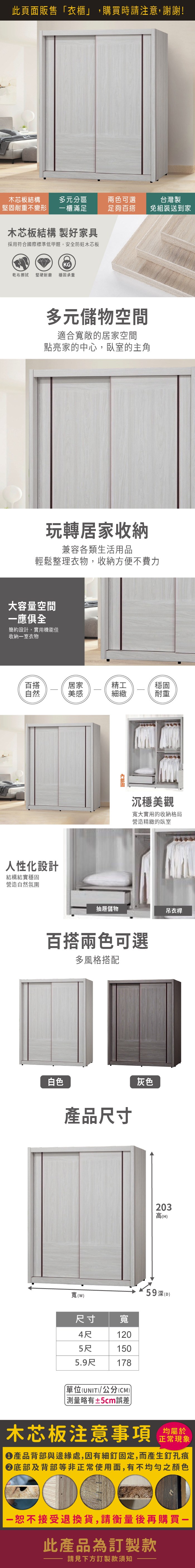 IDEA MIT凡賽4X6尺木質收納抽屜滑門衣櫃/衣櫥(3色任選)