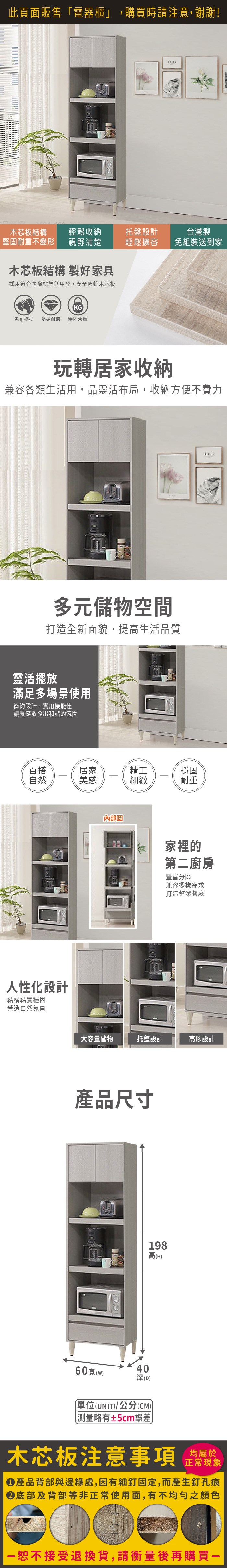 Boden-潔妮2尺收納高餐櫃/碗盤櫃/拉盤電器櫃-60x40x180cm