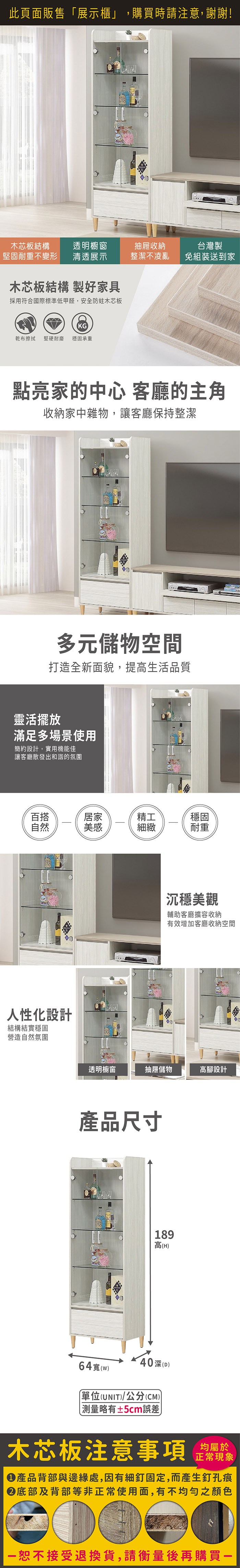 ASSARI-余慕2.1尺展示櫃(寬64x深40x高189cm)