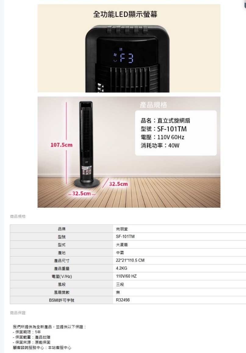 尚朋堂 遙控定時直立式大廈扇 SF-101TM