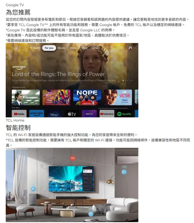 桌上安裝 TCL 85吋 85P7K QLED Google TV電視 / 偏遠運費 搬運樓層 費用另計