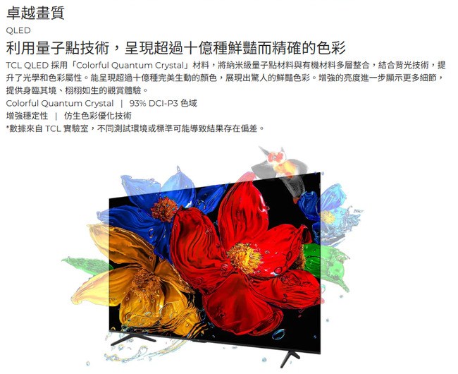 【TCL】65吋 QLED Google TV電視 65P7K-基本安裝-偏遠運費另計