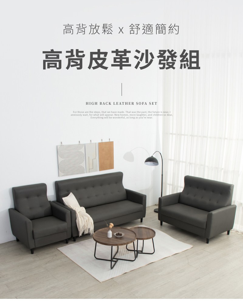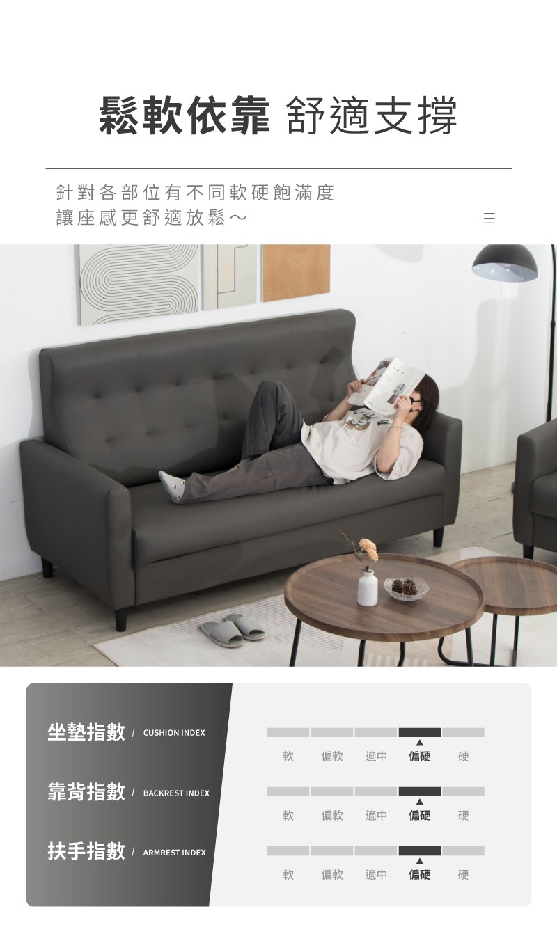 【文創集】安琪 時尚灰柔韌皮革三人座沙發椅-195x87x97cm免組