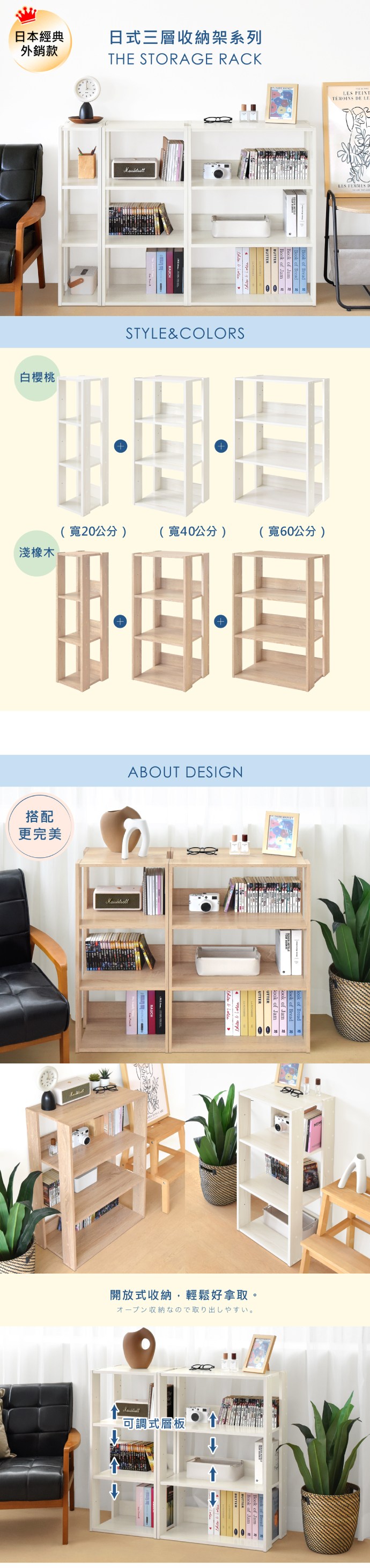 點我下載《HOPMA》日式三層收納架-寬40公分 台灣製造 隙縫展示櫃 置物窄櫃-白櫻桃