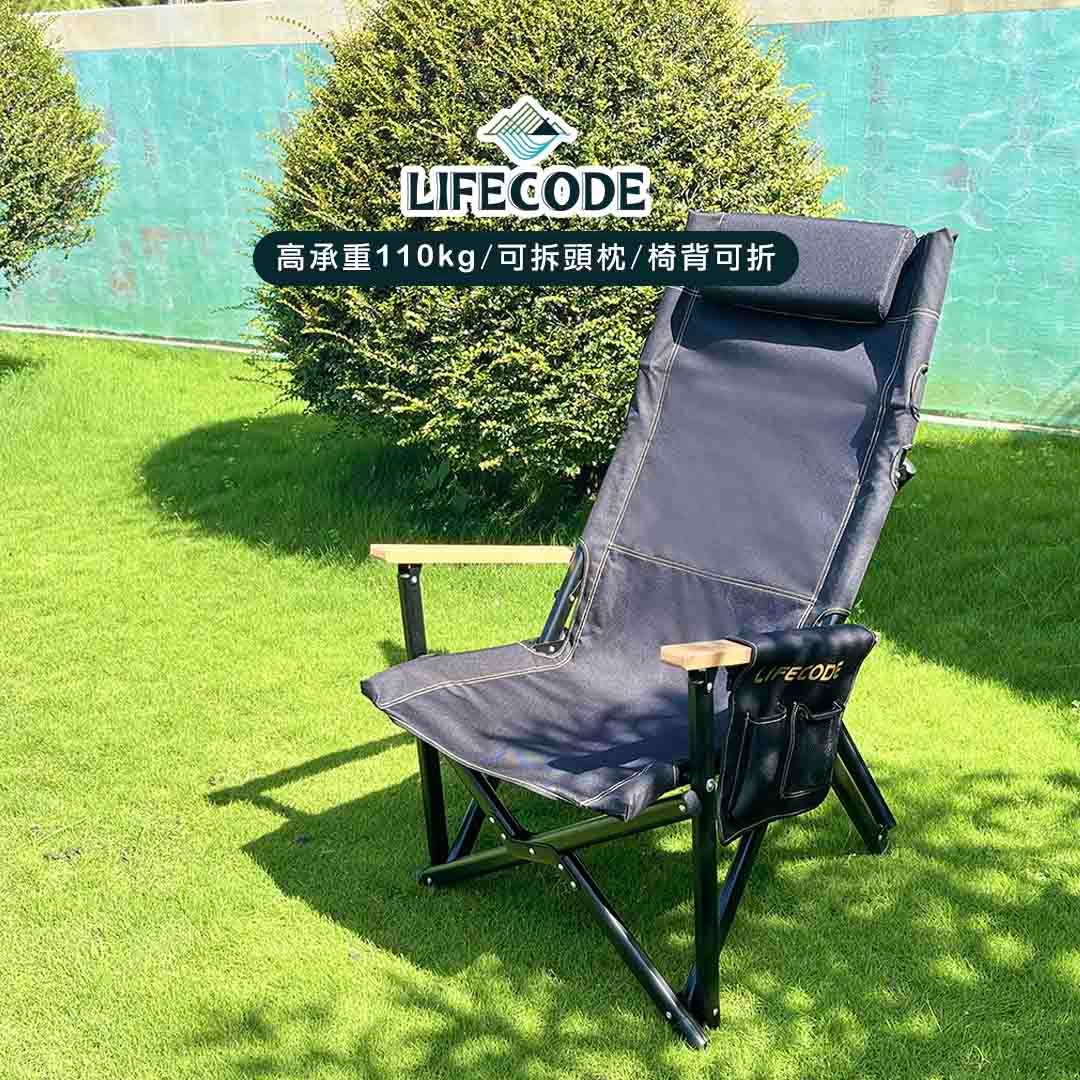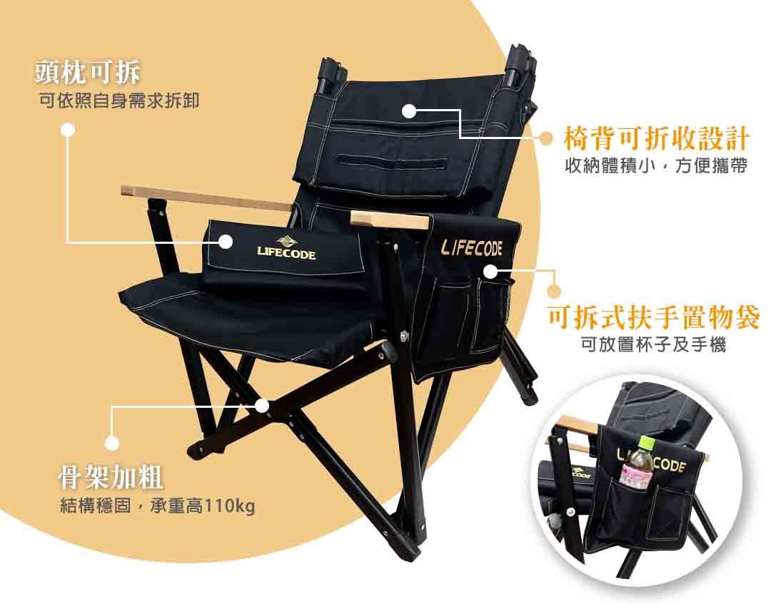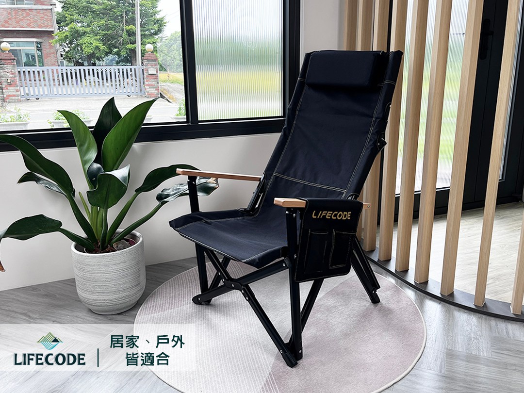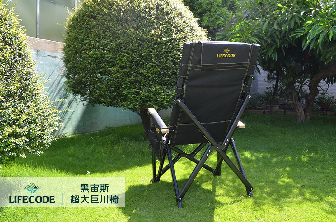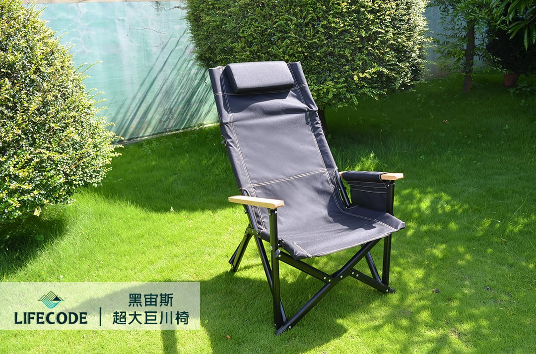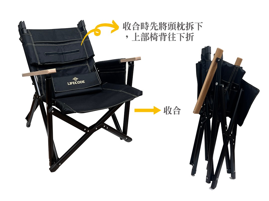 LIFECODE 黑宙斯巨川椅/大川椅/折疊椅(木扶手)+枕頭-黑色