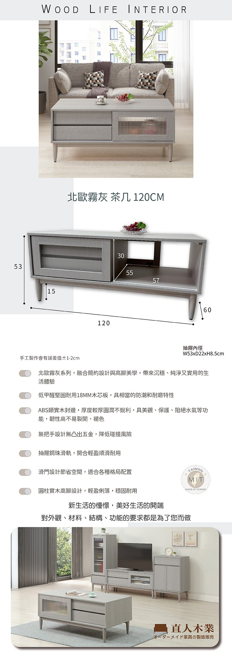 直人木業-北歐霧灰茶几120公分