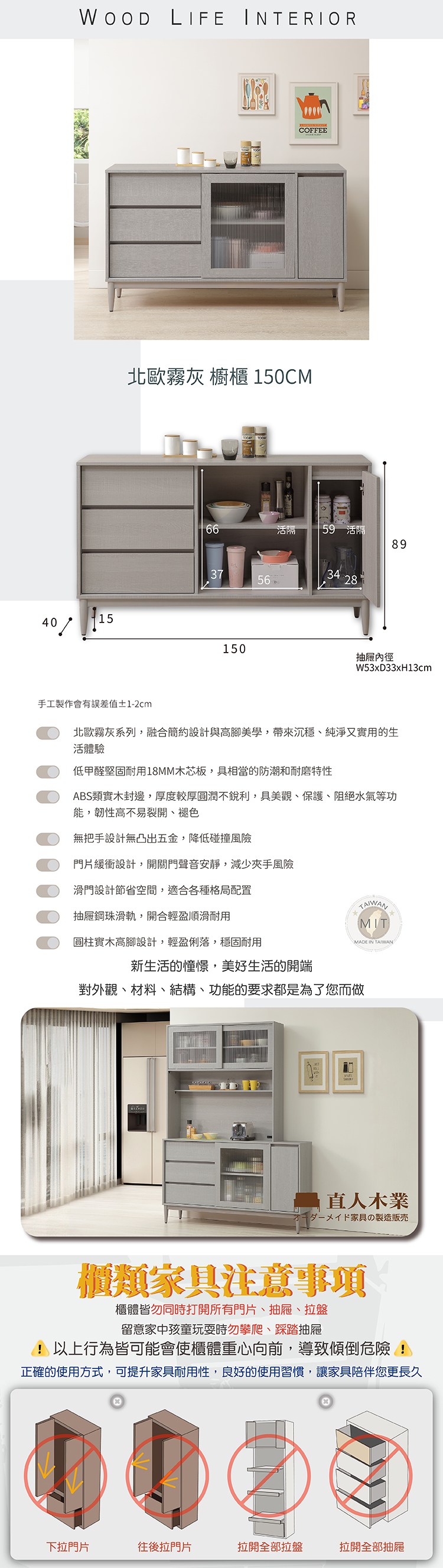 直人木業-UL極簡風白榆木廚櫃152公分