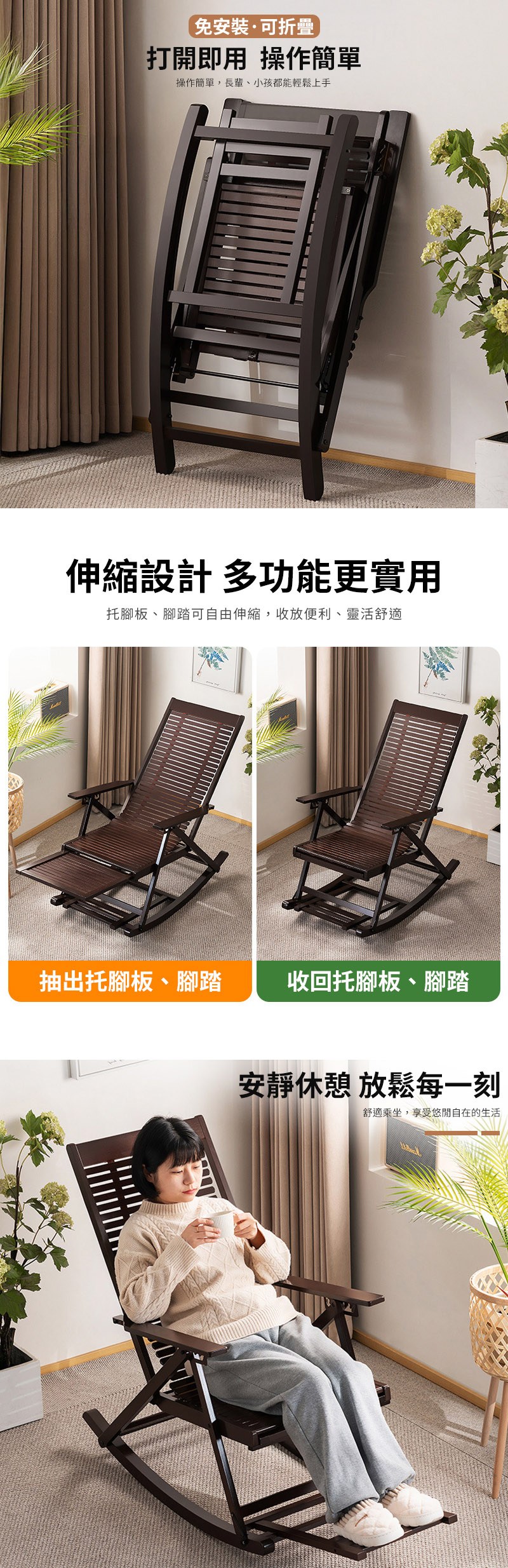 點我下載【HappyLife】楠竹折疊搖椅 Y12393原