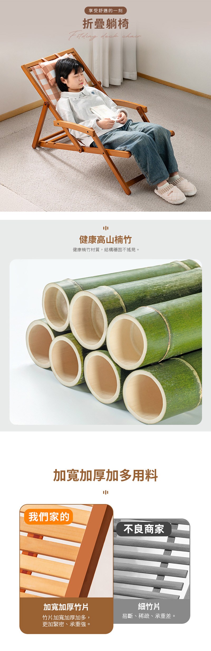 【HappyLife】楠竹折疊躺椅 Y12395原
