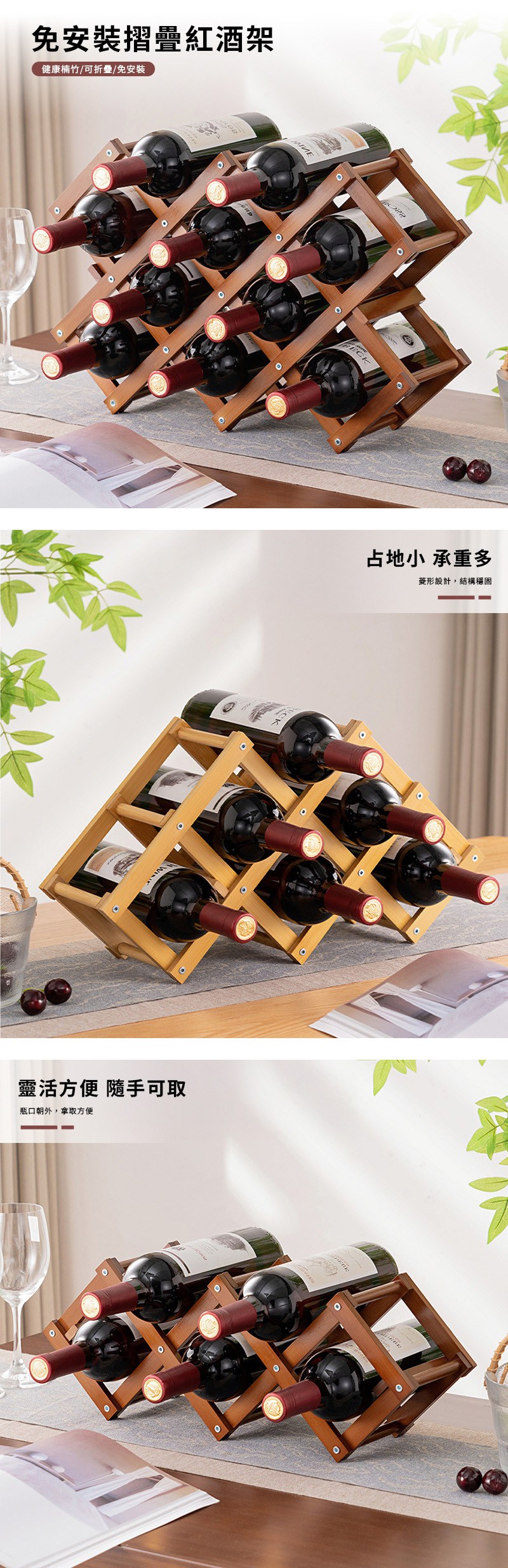【HappyLife】免安裝折疊紅酒架 3瓶架 Y12409原
