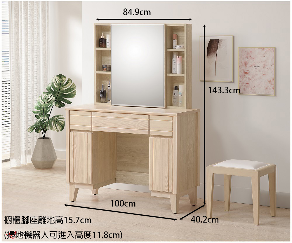 尺寸規格:寬 100 公分 X 深 40.2 公分 X 高 143.3 公分