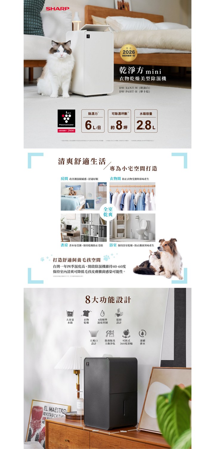 SHARP夏普6公升/日除濕機DW-X6NT-W 送7-11商品卡700元