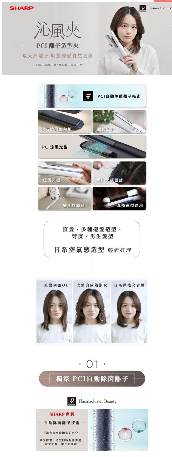 SHARP 夏普 沁風夾 PCI離子造型夾 IB-S8000T-W/B午夜黑