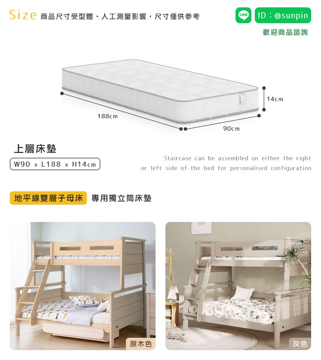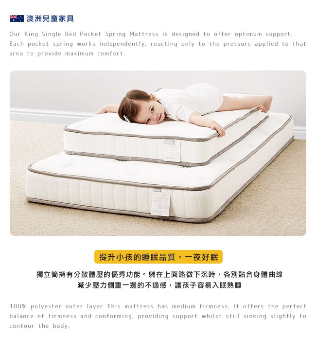 【Boori】地平線子母床專用上層獨立筒床墊‧幅90cm