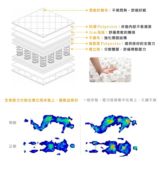 ◆ 獨立筒分散體壓,貼合身形