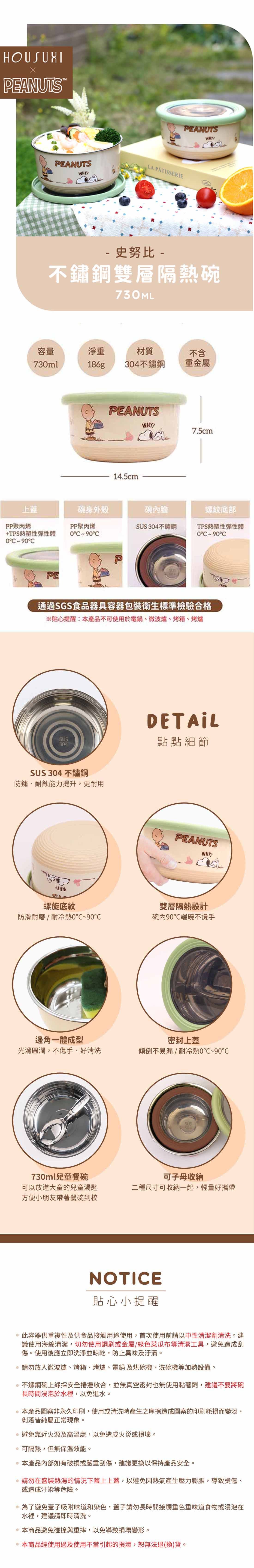 【HOUSUXI】史努比 不鏽鋼雙層隔熱碗 730ml