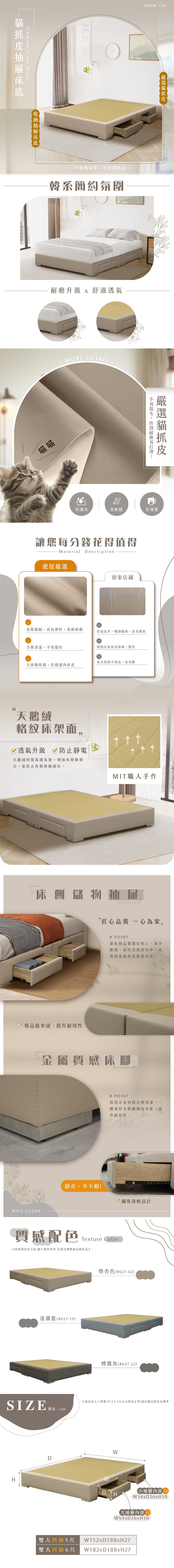 IHouse-御匠手作系列-雙人5尺 收納貓抓皮4抽屜床底 /木心板床架床座 (台灣製)奶杏仁#627-02