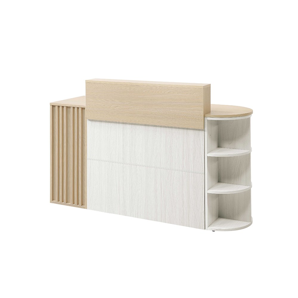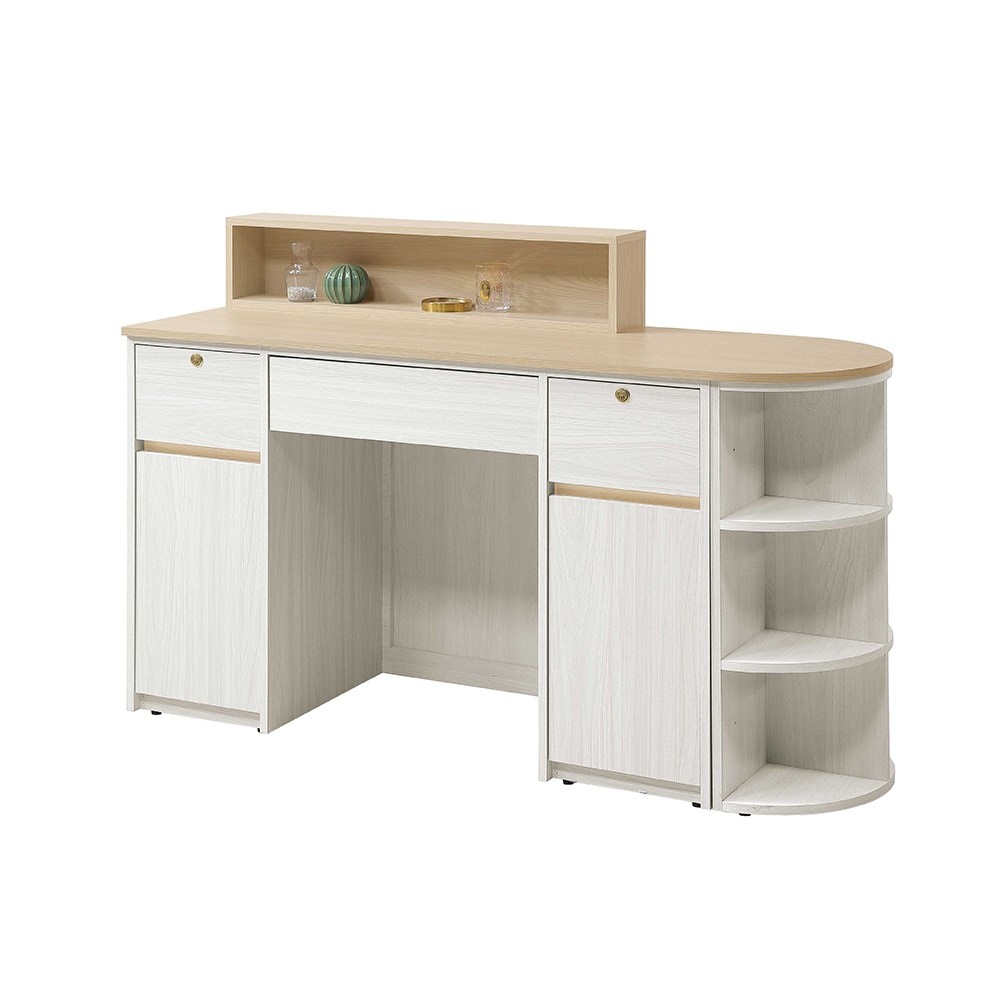 尺寸:寬150x深50x高102(公分)(桌面可左右互換.附2個安全鎖)(含桌上架&圓邊收納架)(附2片活動隔板)