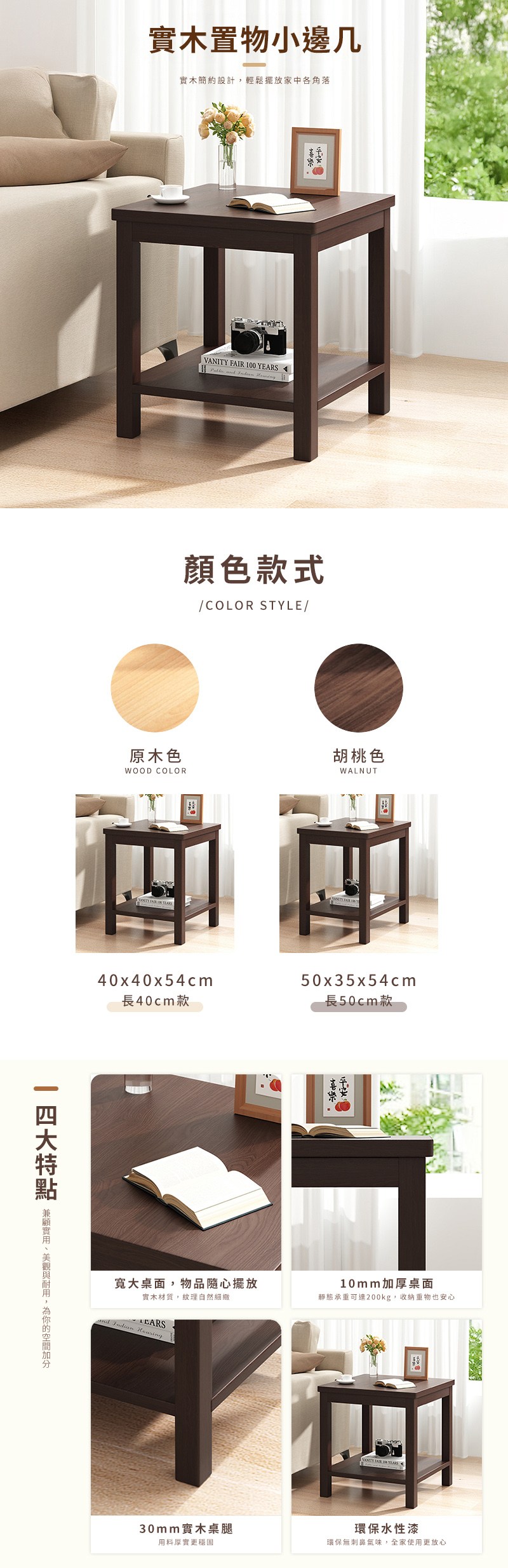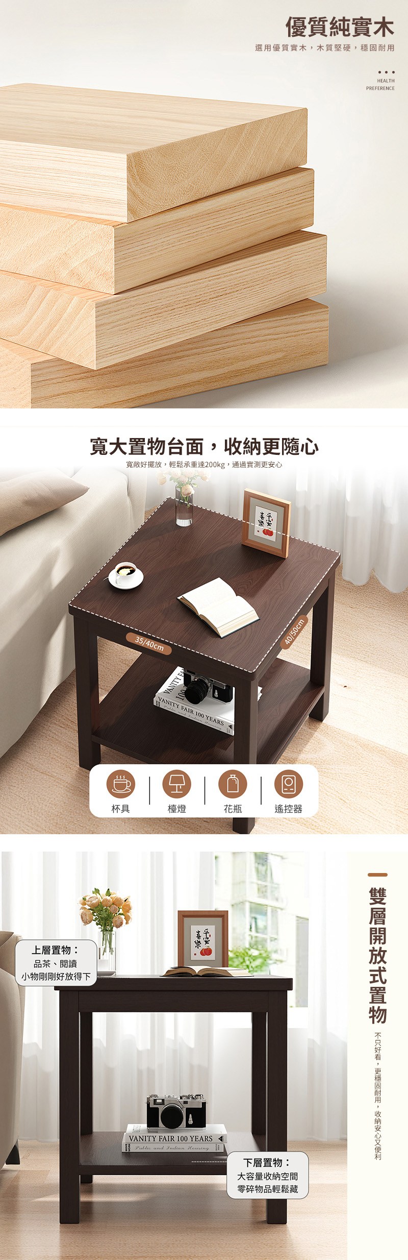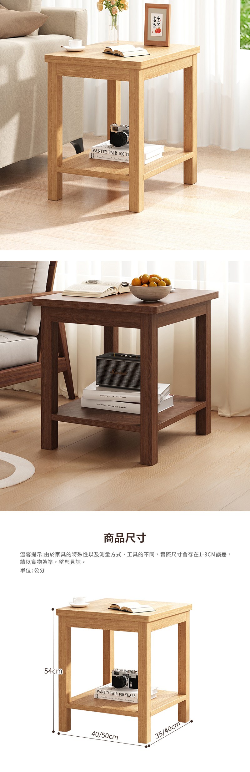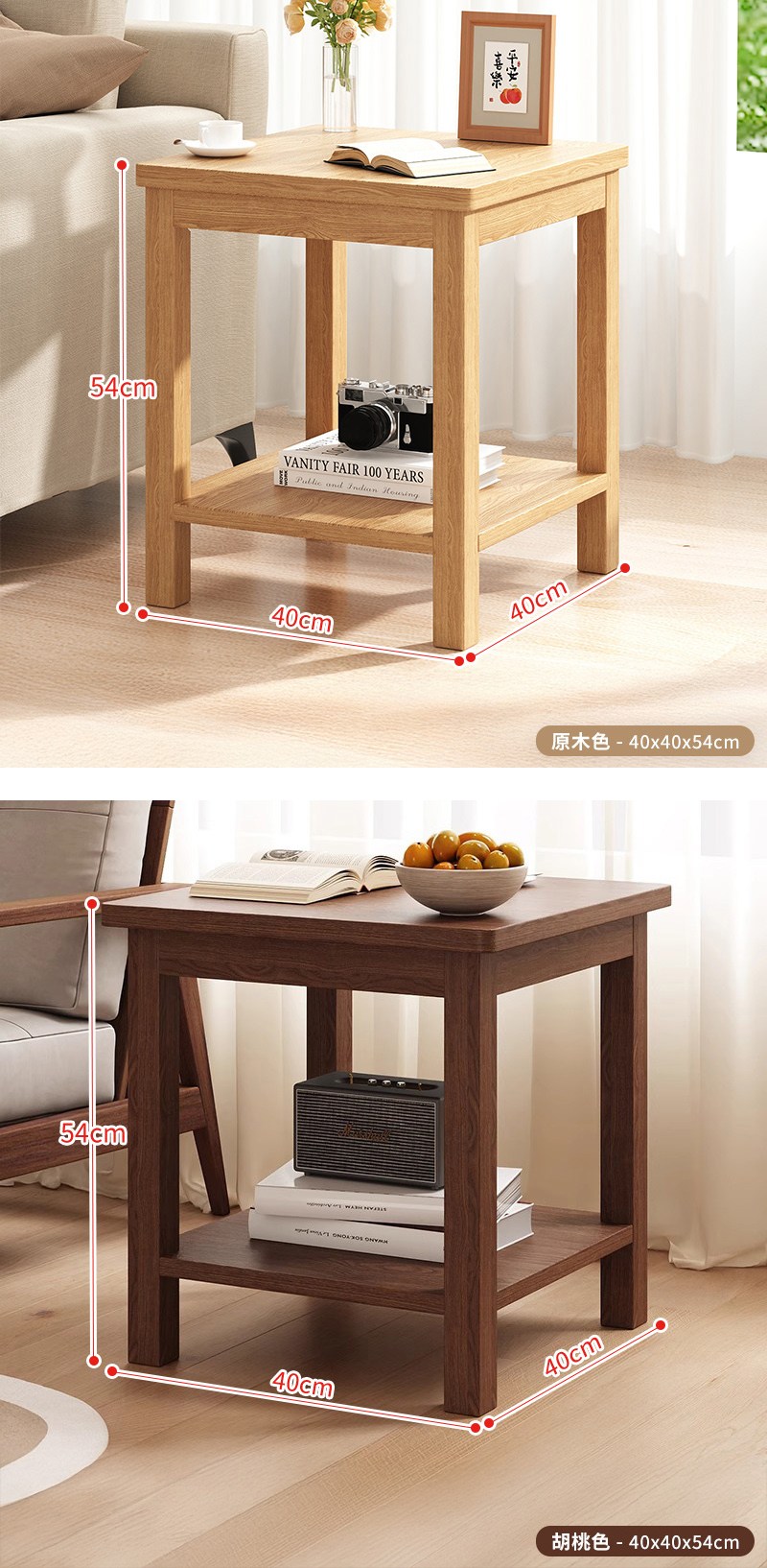 HAPPY LiFE 雙層方形茶几 40cm 11207 原木色