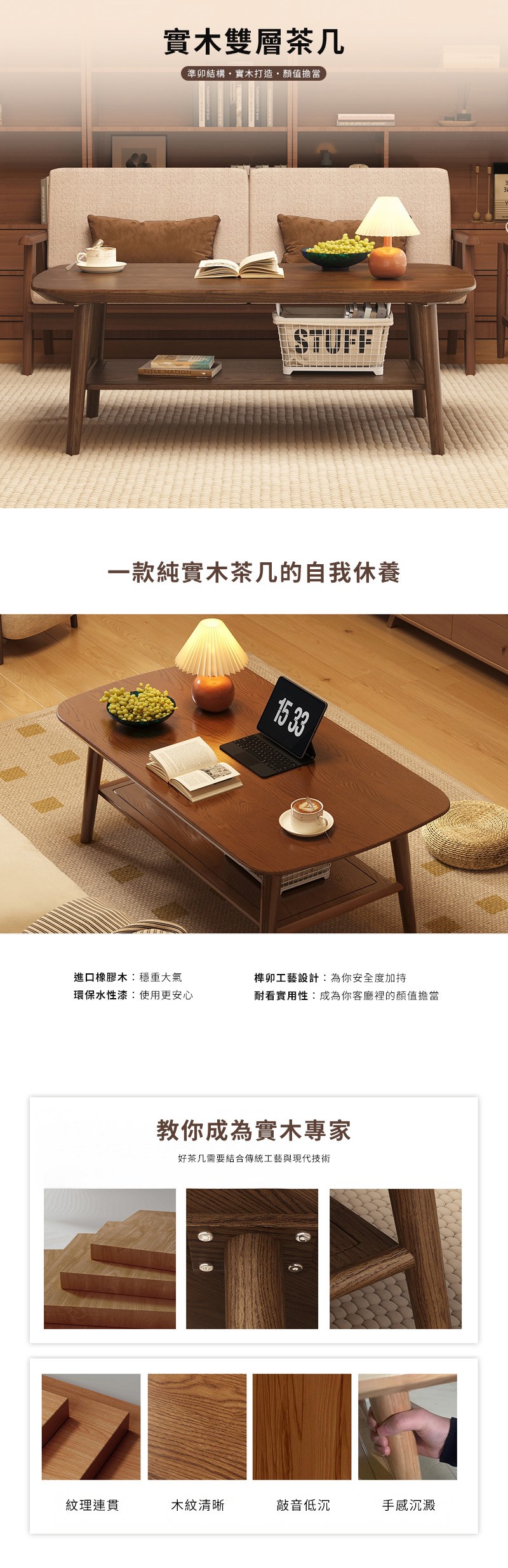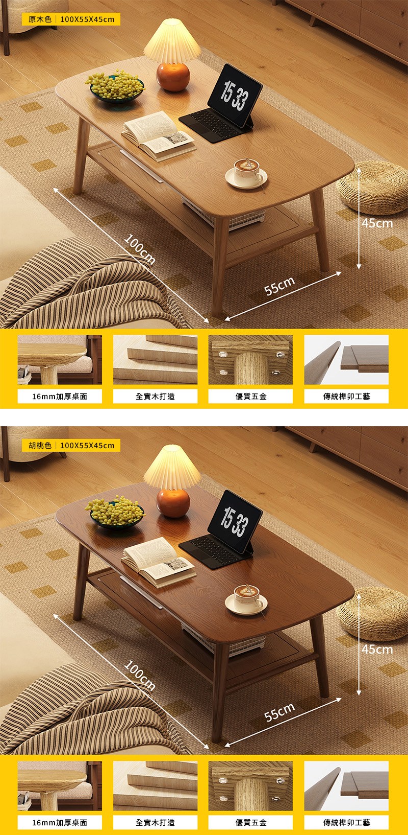【HappyLife】實木雙層茶几 100公分 Y12435原木