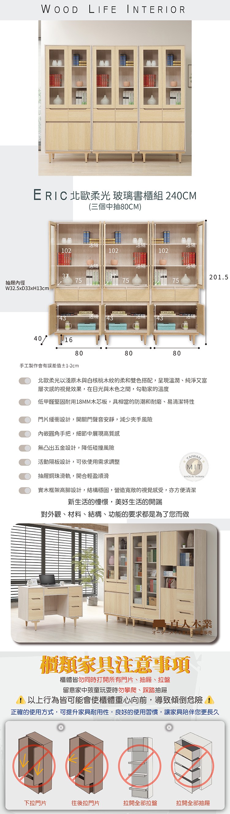 直人木業-ERIC北歐柔光中抽玻璃書櫃組160公分(兩個中抽80公分)