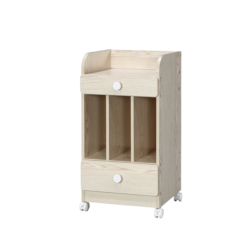 材質:E1 級纖維板 + 木製滑軌 + 塑膠把手/特 色 輪子好推拉,其中兩輪有煞車功能