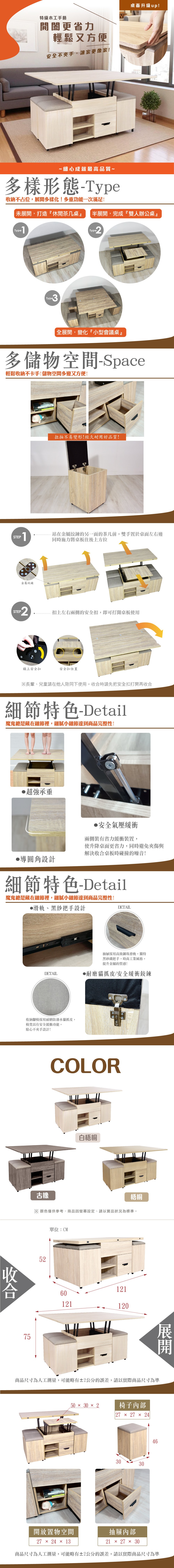 傢俱工場-圭吾 機能升降茶几/餐桌/書桌 (緩衝款)