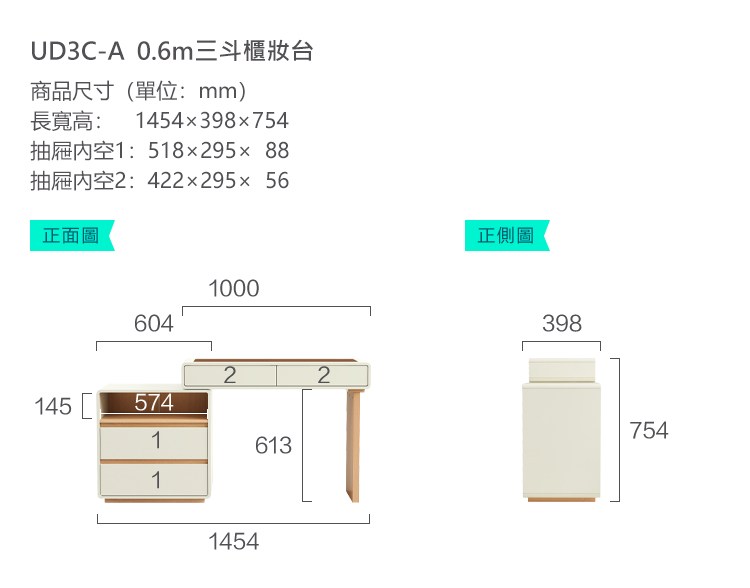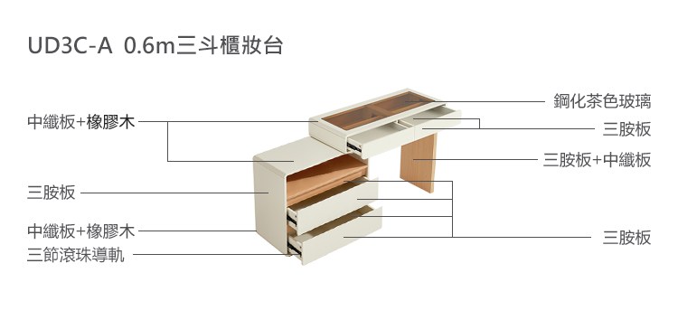 唯熙傢俱-凱恩鋼刷白3尺化妝台