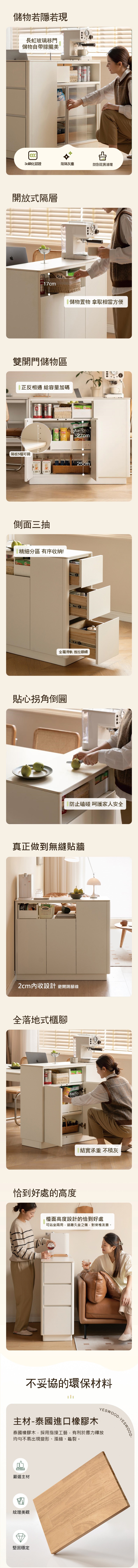 *注意:以下為情境示意圖,實際商品款式為小方奶油風橡膠木實木岩板收納餐櫃1M Y246Q02