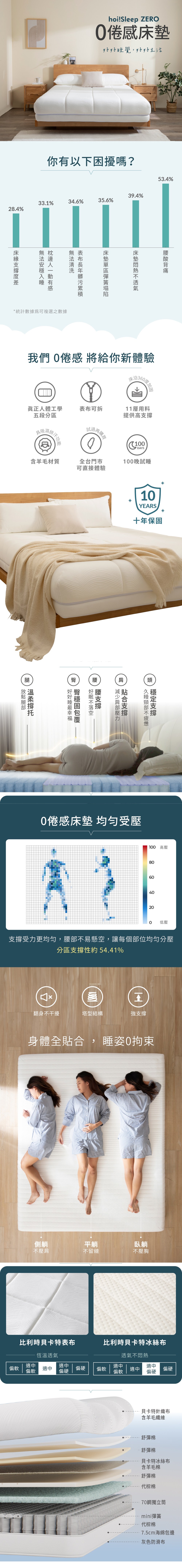 hoi!Sleep ZERO 零倦感獨立筒床墊台規雙人5尺150*188*26cm