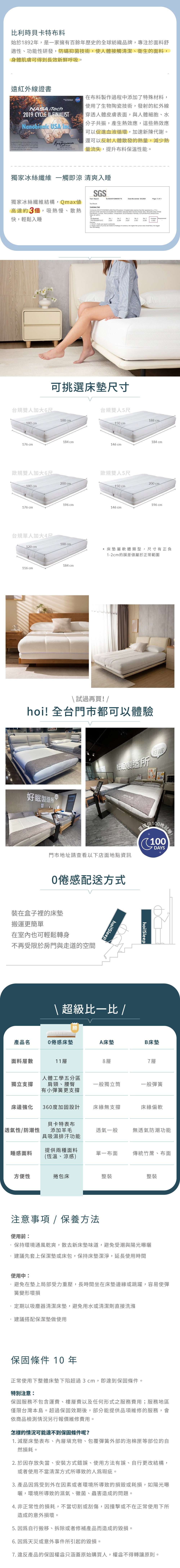 hoi!Sleep ZERO 零倦感獨立筒床墊歐規雙人加大6尺180*200*26cm