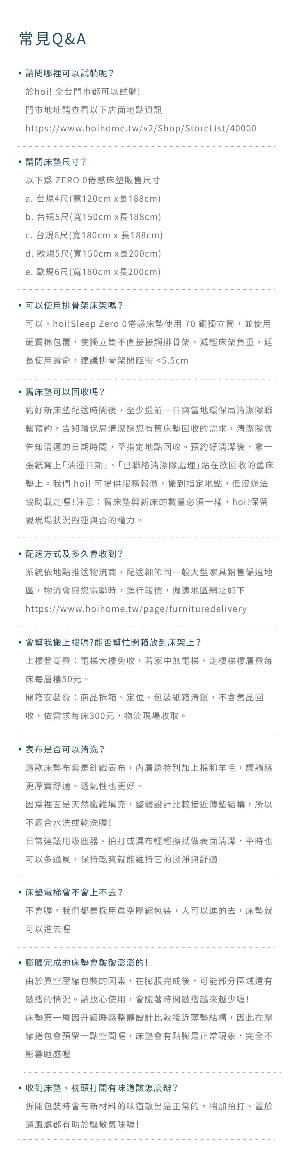 hoi!Sleep ZERO 零倦感獨立筒床墊歐規雙人5尺150*200*26cm