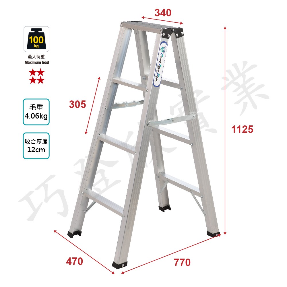 - 頂蓋用鐵蓋補強,讓整座梯具在踩踏時更穩固。