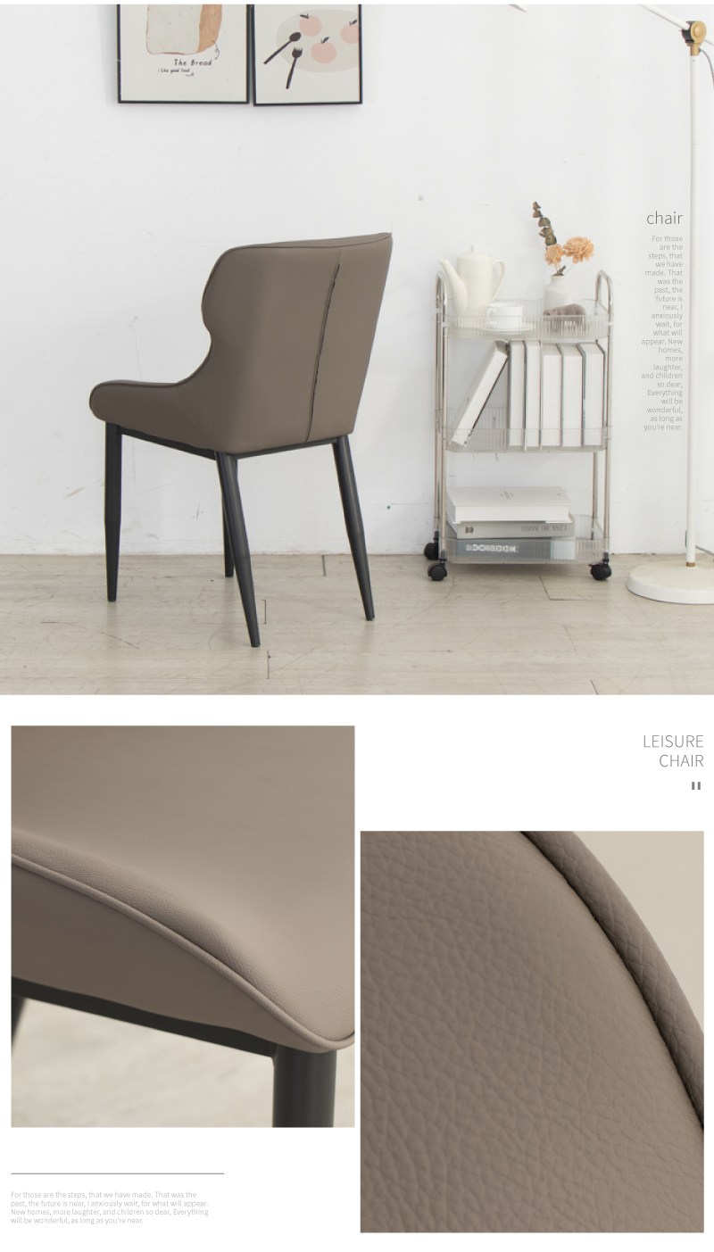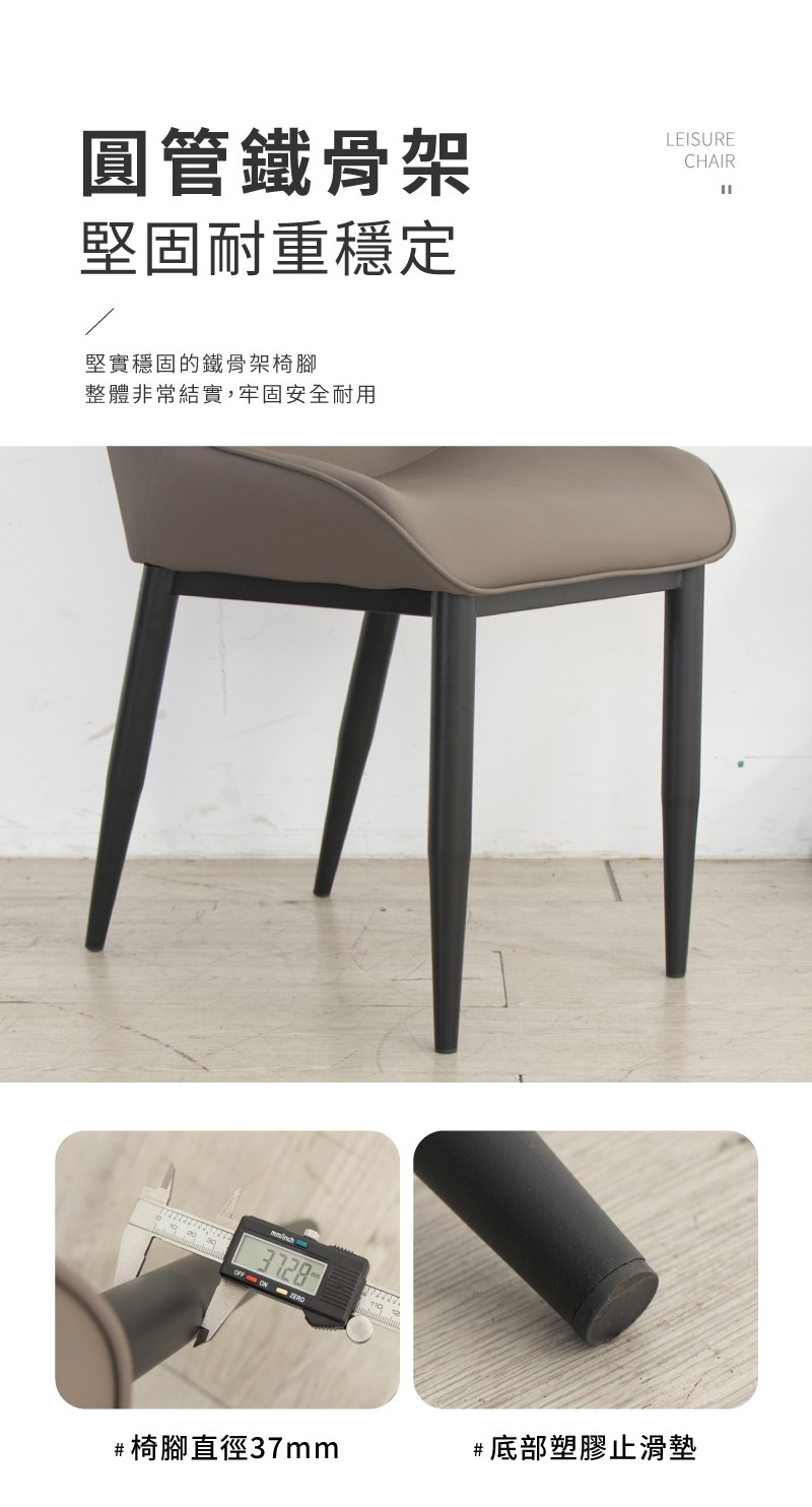 【Hampton 漢汀堡】葛瑞斯皮面餐椅-黑腳-多色可選石頭灰