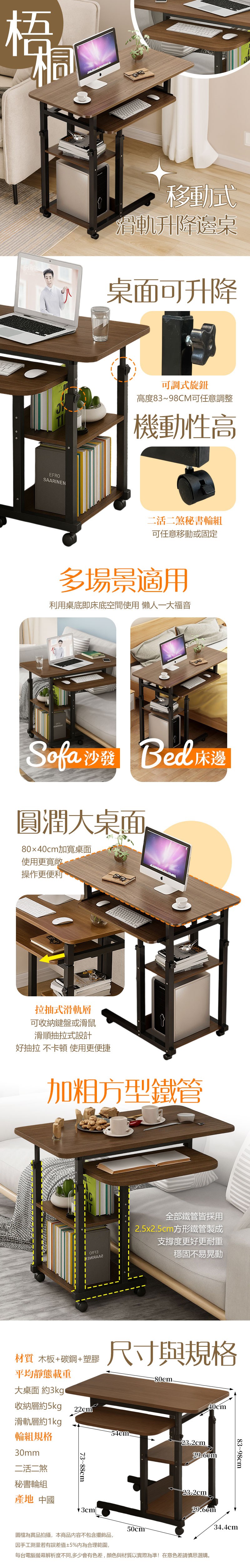 【居家cheaper】梧桐移動式滑軌升降邊桌 DS020BR-KD 升降桌 床邊桌 沙發邊桌 電腦桌 筆電桌 病床桌棕色