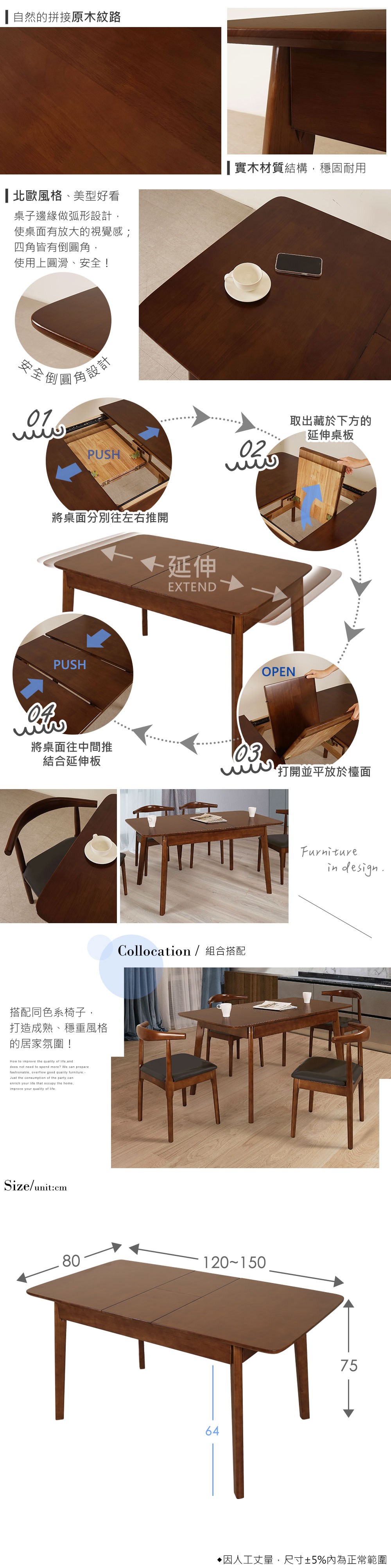 【RICHOME】405款可延伸餐桌(寬80)-胡桃