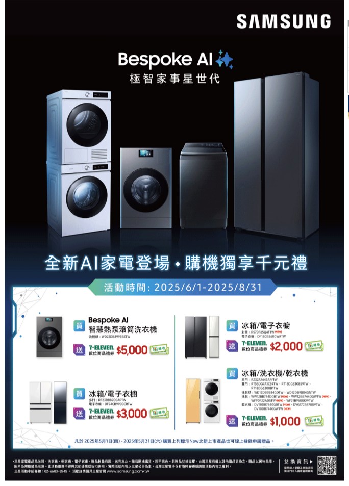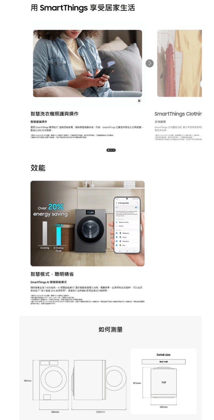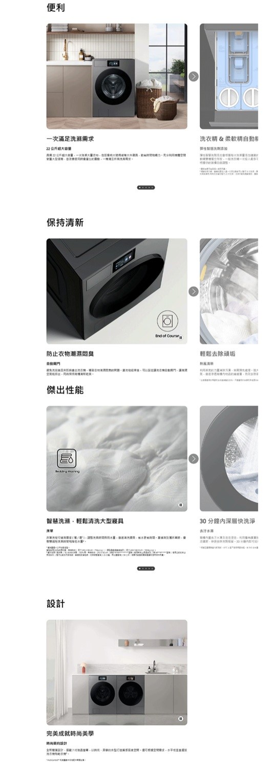 Samsung 三星 22KG BESPOKE設計品味系列 AI智慧熱泵蒸洗脫烘變頻滾筒洗衣機 WD22DB8995BZTW